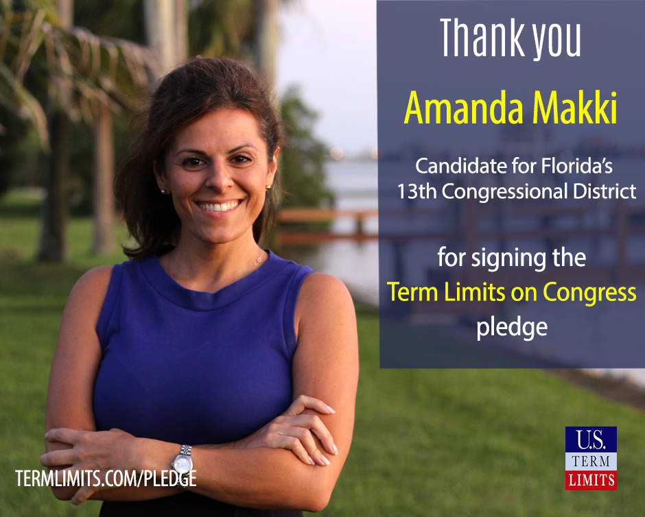 The U.S. Term Limits amendment pledge is provided to every announced candidate for federal office. It reads, “I pledge that as a member of Congress, I will cosponsor and vote for the U.S. Term Limits amendment of three (3) House terms and two (2) Senate terms and no longer limit.” The U.S. Term Limits constitutional amendment has been introduced in both the U.S. Senate by Senator Ted Cruz (SJR1) and the U.S. House by Representative Francis Rooney (HJR20).