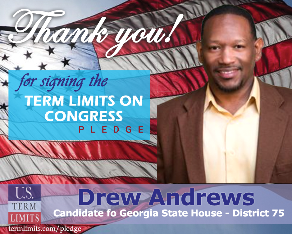 The U.S. Term Limits pledge is provided to candidates and members of state legislatures. It reads, “I pledge that, as a member of the state legislature, I will cosponsor, vote for, and defend the resolution applying for an Article V convention for the limited purpose of enacting term limits on Congress.”