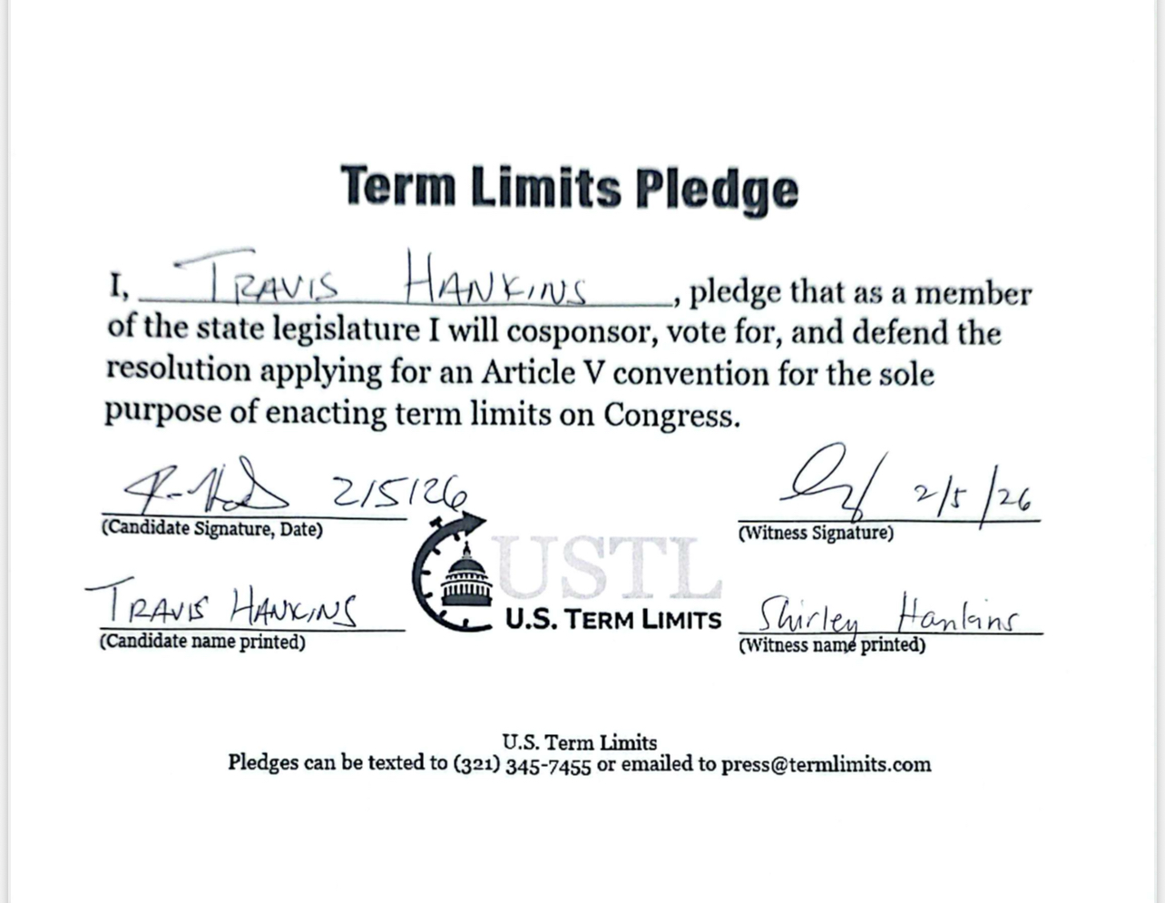 Travis Hankins Pledges to Support Congressional Term Limits
