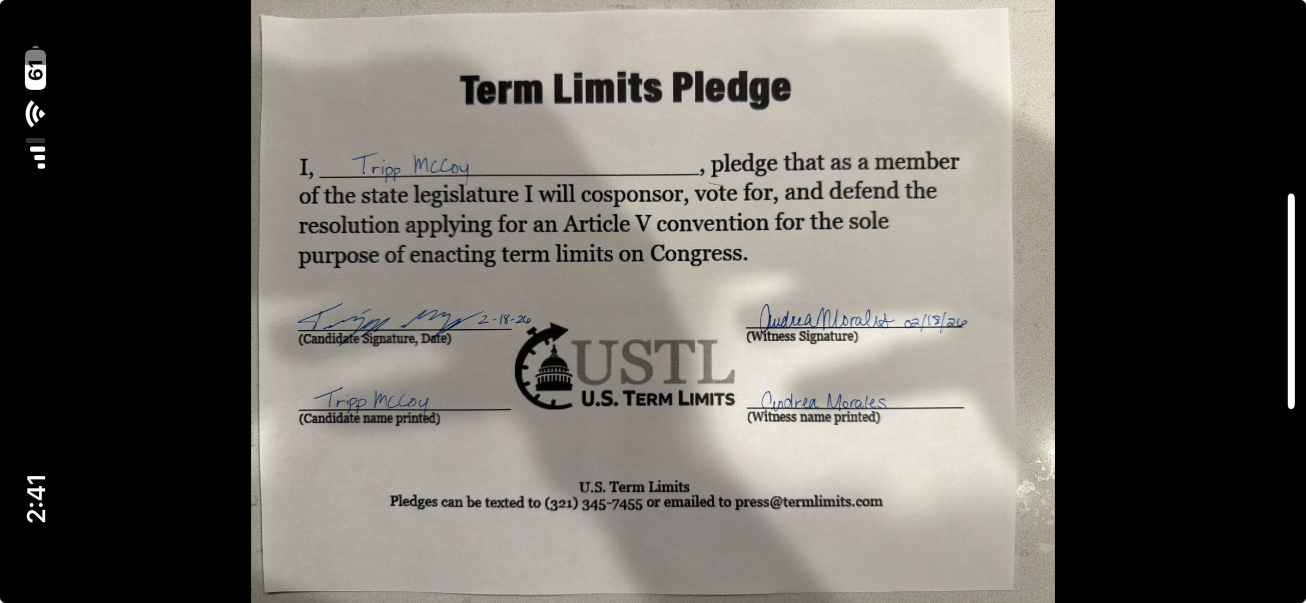Tripp McCoy Pledges to Support Congressional Term Limits