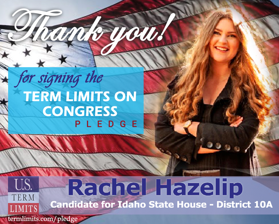 The U.S. Term Limits pledge is provided to candidates and members of state legislatures. It reads, “I pledge that, as a member of the state legislature, I will cosponsor, vote for, and defend the resolution applying for an Article V convention for the limited purpose of enacting term limits on Congress.”