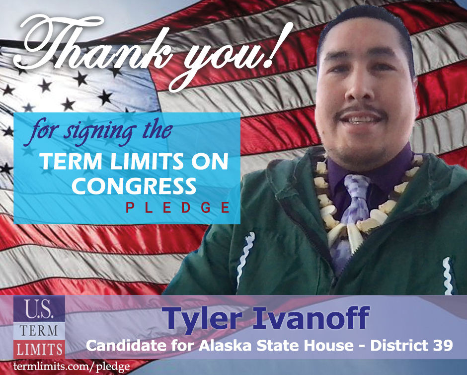 Kusilvak, AK – U.S. Term Limits (USTL), the leader in the national, non-partisan movement to limit terms for elected officials, is gathering support from state lawmakers across the nation. Its mission is to get 34 states to apply for an amendment proposal convention specific to term limits on Congress. Alaska state house candidate, Tyler Ivanoff (district 39) has committed support for term limits on Congress by signing the Term Limits Convention pledge. Ivanoff is the first signer in this race.