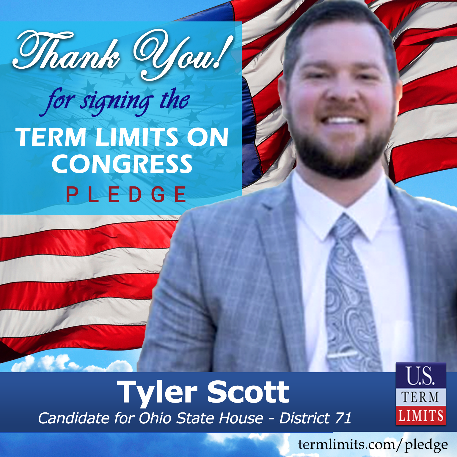 Beavercreek, OH – U.S. Term Limits (USTL), the leader in the national, non-partisan movement to limit terms for elected officials, is gathering support from state lawmakers across the nation. Its mission is to get 34 states to apply for an amendment proposal convention specific to term limits on Congress. Ohio state house candidate, Tyler Scott (district 71), has committed support for term limits on Congress by signing the Term Limits Convention Pledge. Scott is the first signer in this race.
