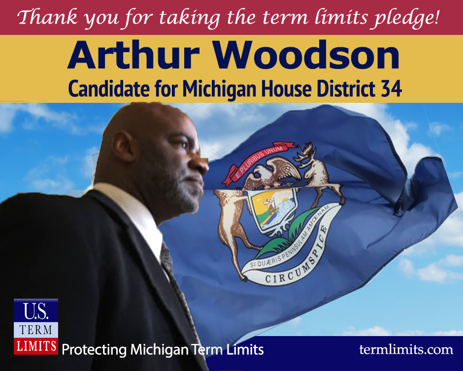 Lansing, MI – U.S. Term Limits (USTL), the leader in the national, non-partisan movement to limit terms for elected officials, is gathering support from elected officials across Michigan. Its mission is to advocate for term limits on all elected officials. State house candidate, Arthur Woodson of district 34, has committed to defend term limits in Michigan by signing the term limits pledge.