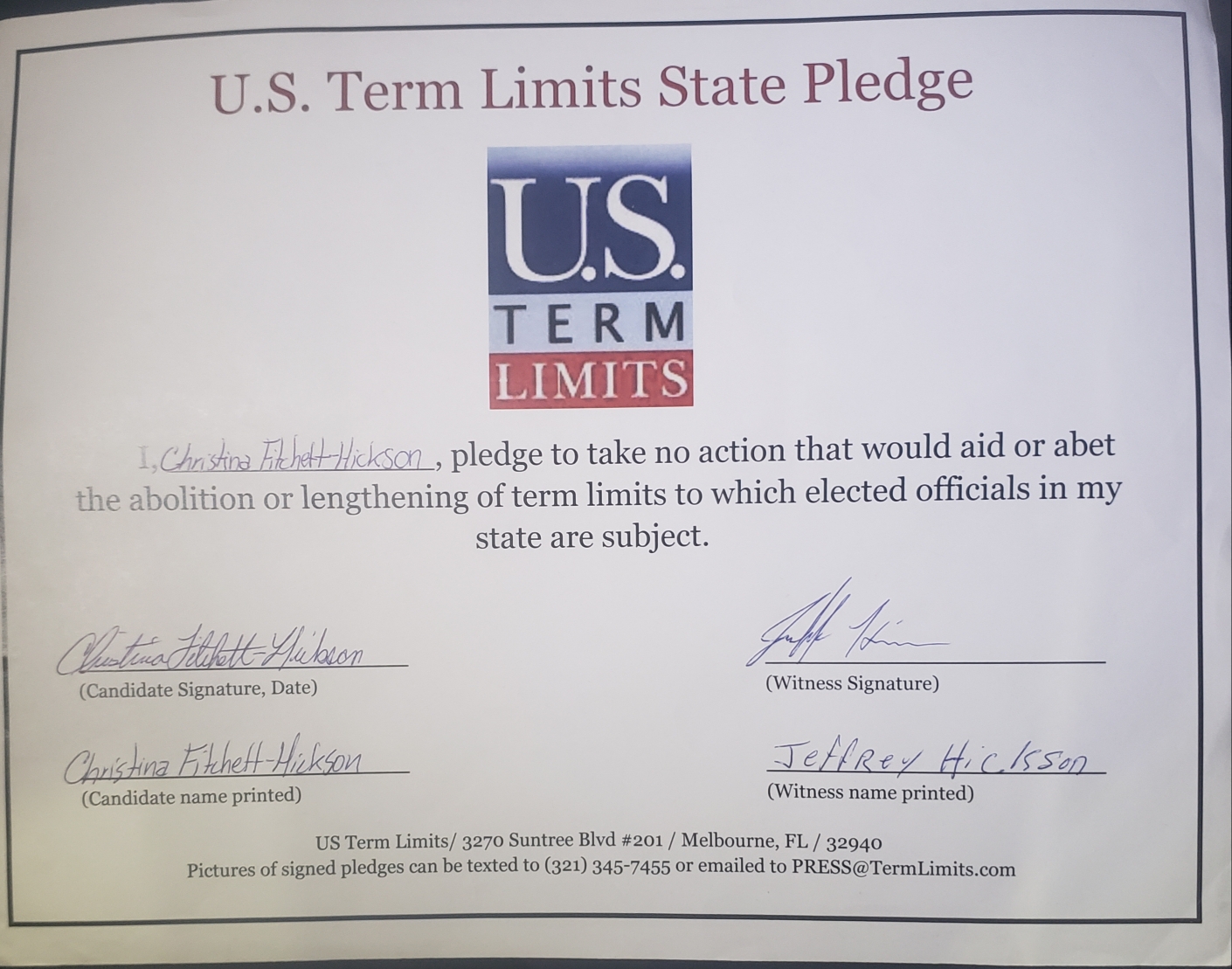 U.S. Term Limits Praises Christina Fitchett-Hickson for Signing Pledge