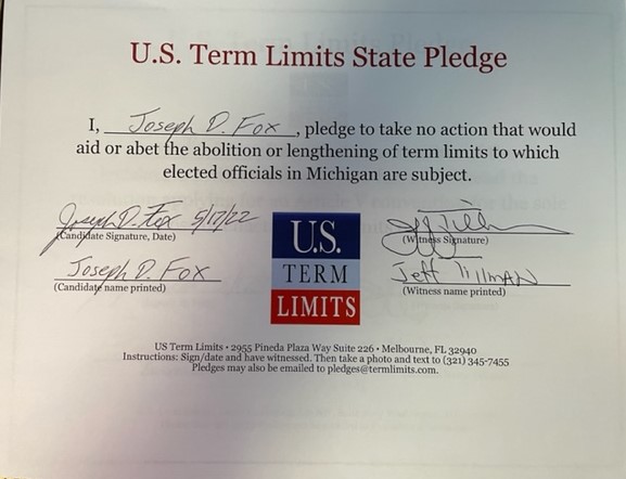 Detroit, MI – U.S. Term Limits (USTL), the leader in the national, non-partisan movement to limit terms for elected officials, is gathering support from lawmakers and candidates across Michigan. Its mission is to advocate for term limits on all elected officials. State house candidate, Joseph Fox of district 101, has committed to defend term limits in Michigan by signing the term limits pledge. The primary election is scheduled for August 2, 2022.