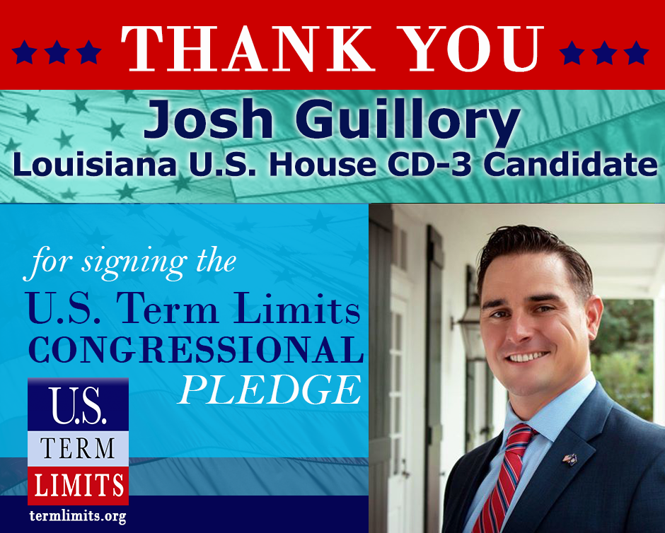 Washington, D.C. – U.S. Term Limits (USTL), the leader in the national movement to limit terms for elected officials, today praised U.S. House candidate of Louisiana, Josh Guillory (CD-3), for signing its congressional term limits pledge.