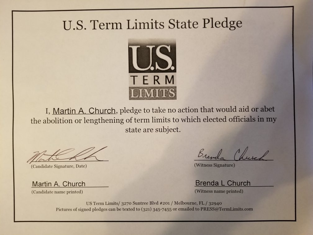U.S. Term Limits Praises Martin Church for Signing Pledge