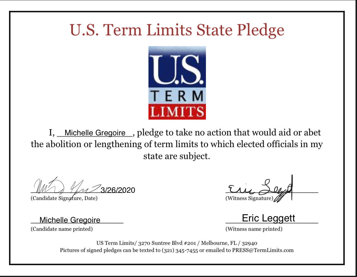 U.S. Term Limits Praises Michelle Gregoire for Signing Pledge