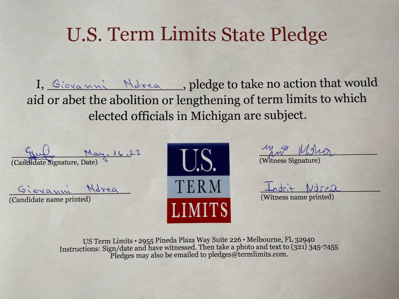 Detroit, MI – U.S. Term Limits (USTL), the leader in the national, non-partisan movement to limit terms for elected officials, is gathering support from lawmakers and candidates across Michigan. Its mission is to advocate for term limits on all elected officials. State house candidate, Michelle Smith of district 58, has committed to defend term limits in Michigan by signing the term limits pledge. Previously, candidate Giovanni Ndrea also signed the pledge. The primary election is scheduled for August 2, 2022.