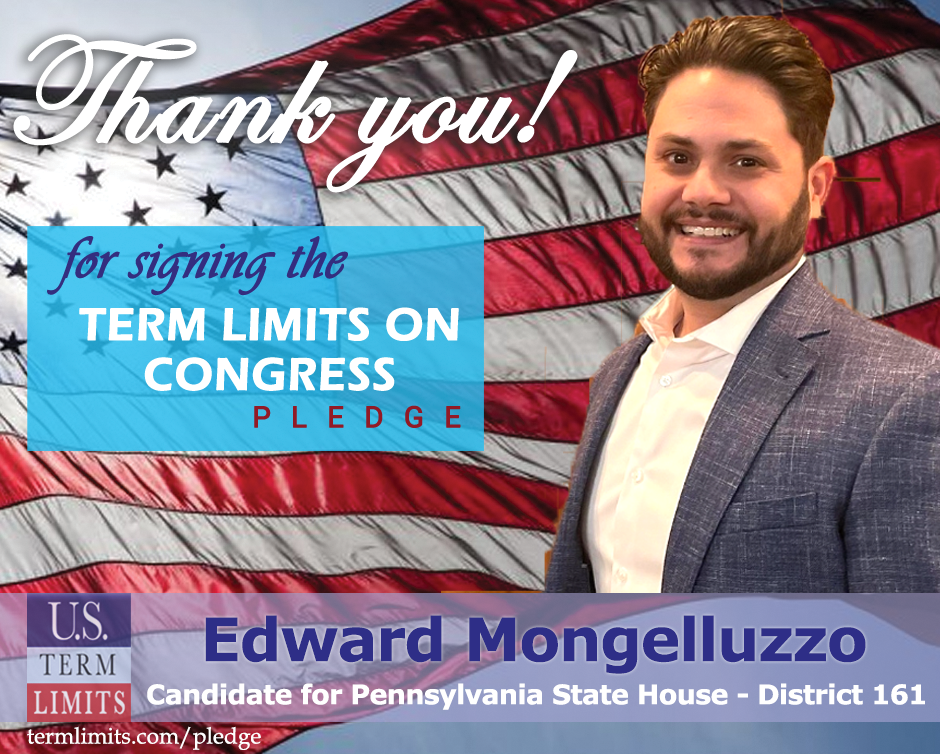 The U.S. Term Limits Amendment Pledge is provided to candidates and members of the state legislatures. It reads, “I pledge that as a member of the state legislature, I will support and vote for the resolution applying for an Article V convention for the limited purpose of enacting term limits on Congress.”