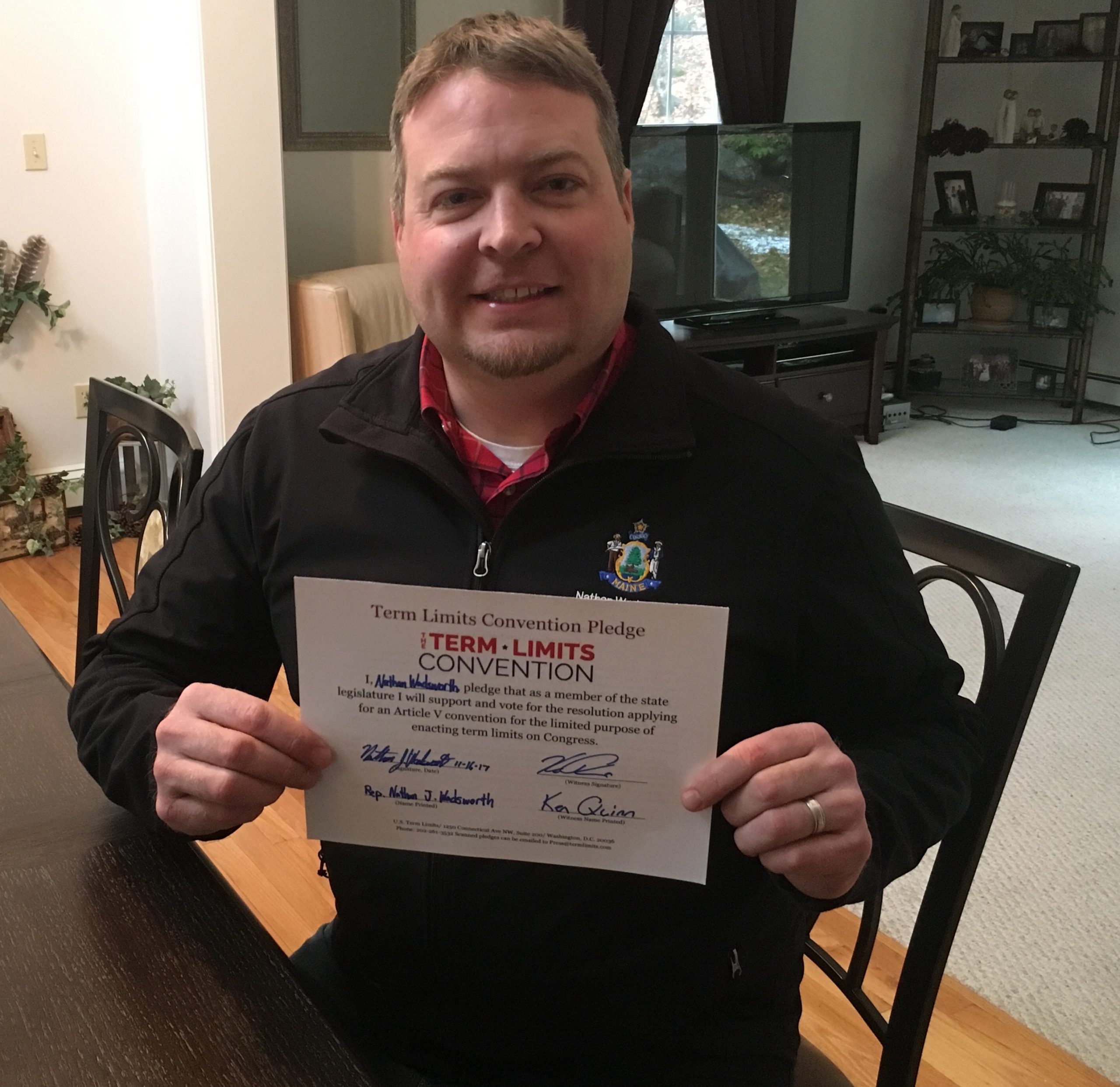 Washington, D.C. – U.S. Term Limits (USTL), the leader in the national movement to limit terms for elected officials, is gathering tremendous support from state lawmakers across the nation. Their goal is to call a national term limits convention for the sole purpose of imposing congressional term limits. Maine is a key state in this effort thanks to the work of House Representative Nathan Wadsworth (District 70) who signed USTL’s Article V Term Limits Convention Pledge. The pledge reads, “I pledge that as a member of the state legislature, I will support and vote for the resolution applying for an Article V convention for the limited purpose of enacting term limits on Congress.”