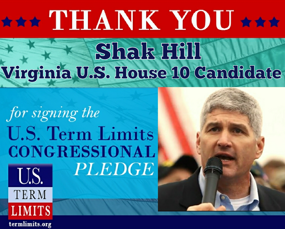Washington, D.C. – U.S. Term Limits (USTL), the leader in the national movement to limit terms for elected officials, today praised Virginia U.S. House District 10 candidate, Shak Hill, for signing its congressional term limits pledge.
