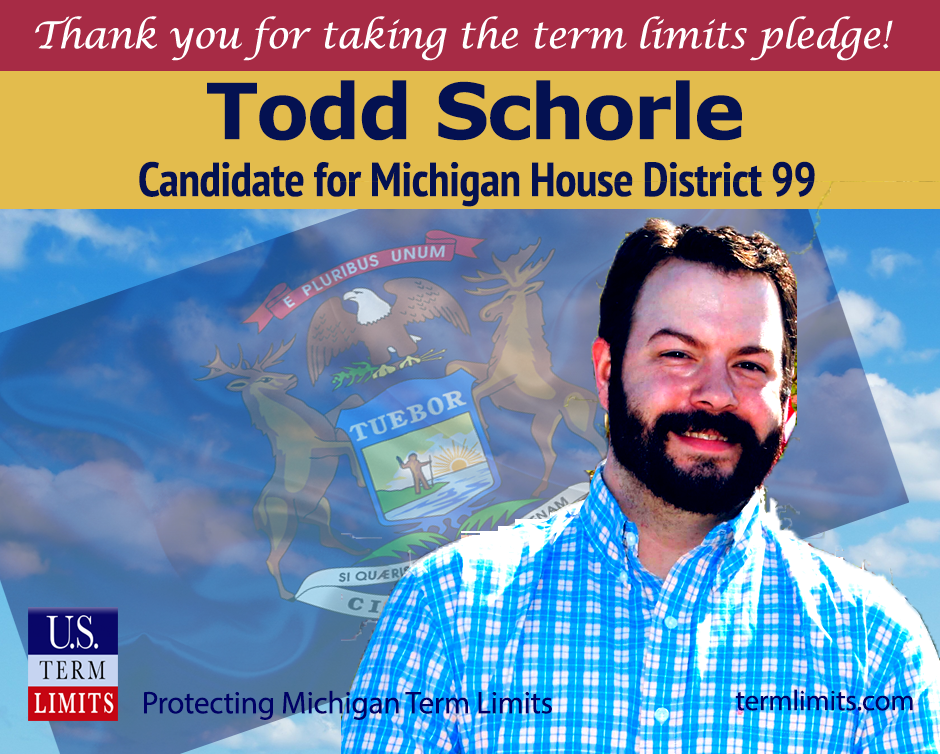 Lansing, MI – U.S. Term Limits (USTL), the leader in the national, non-partisan movement to limit terms for elected officials, is gathering support from elected officials across Michigan. Its mission is to advocate for term limits on all elected officials. State house candidate, Todd Schorle of district 99, has committed to defend term limits in Michigan by signing the term limits pledge. Schorle is the first signer in this race.