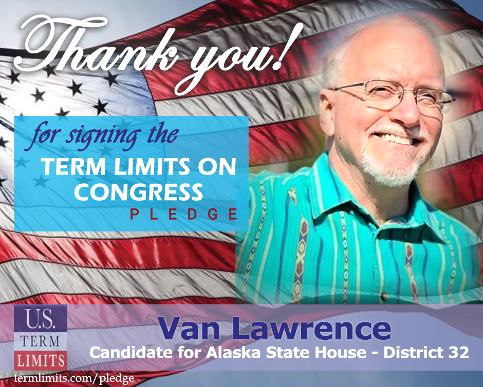 Fairbanks, AK – U.S. Term Limits (USTL), the leader in the national, non-partisan movement to limit terms for elected officials, is gathering support from state lawmakers across the nation. Its mission is to get 34 states to apply for an amendment proposal convention specific to term limits on Congress. Alaska state house candidate, Van Lawrence (district 32), has committed support for term limits on Congress by signing the Term Limits Convention pledge.