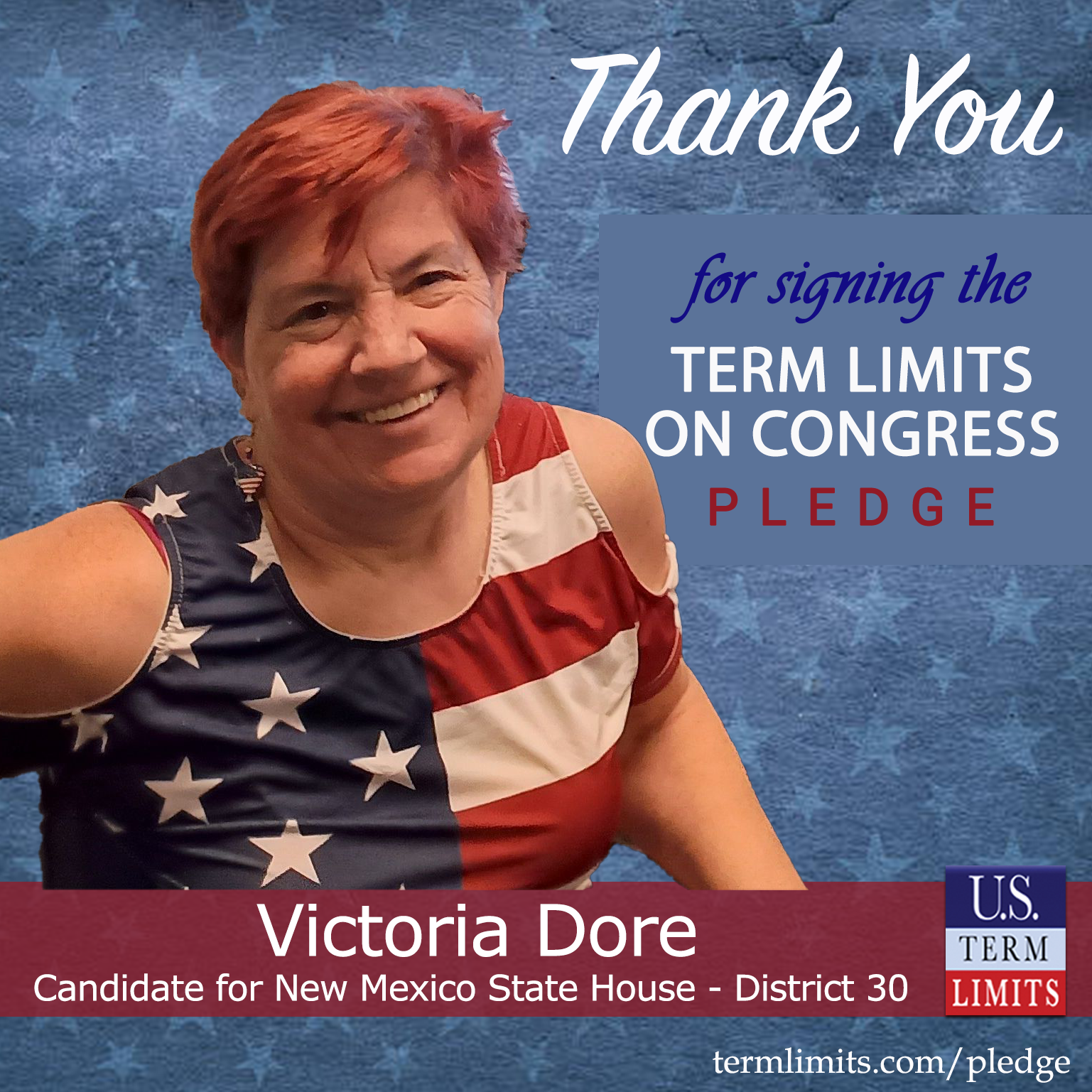 Oso Grande, NM– U.S. Term Limits (USTL), the leader in the national, non-partisan movement to limit terms for elected officials, is gathering support from state lawmakers across the nation. Its mission is to get 34 states to apply for an amendment proposal convention specific to term limits on Congress. New Mexico state house candidate, Victoria Dore (District 30), has committed support for term limits on Congress by signing the term limits convention pledge. Dore is the first signer in this race.