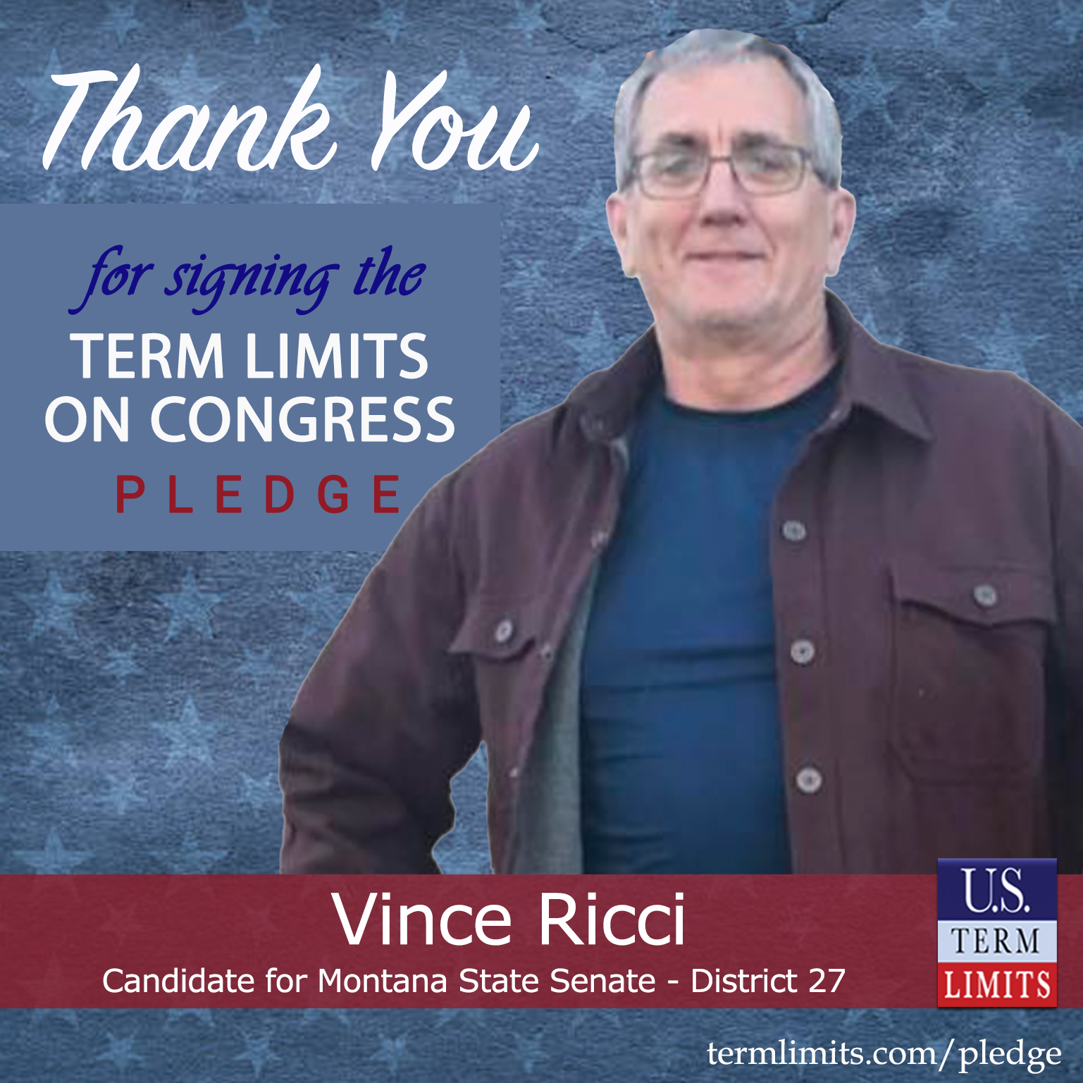 Billings, MT – U.S. Term Limits (USTL), the leader in the national, non-partisan movement to limit terms for elected officials, is gathering support from state lawmakers across the nation. Its mission is to get 34 states to apply for an amendment proposal convention specific to term limits on Congress. Montana state senate candidate, Vince Ricci (District 27), has committed support for term limits on Congress by signing the Term Limits Convention Pledge. Previously, candidate Chris Friedel also signed the pledge.