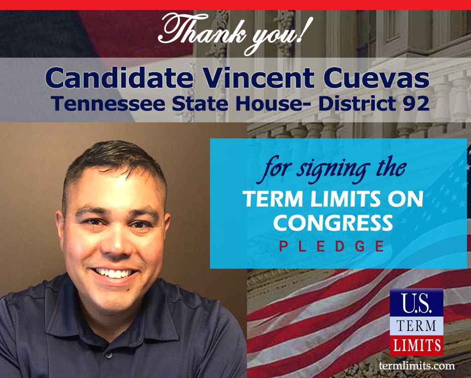 Washington, D.C. – U.S. Term Limits (USTL), the leader in the national, non-partisan movement to limit terms for elected officials, is gathering support from state lawmakers across the nation. Its mission is to get 34 states to apply for an amendment proposal convention specific to term limits on Congress. 2020 Tennessee state house candidate Vincent Cuevas (district 92), has committed support for term limits on Congress by signing the Term Limits Convention pledge. Cuevas is the first signer in this race. The primary election is scheduled for August 6, 2020.