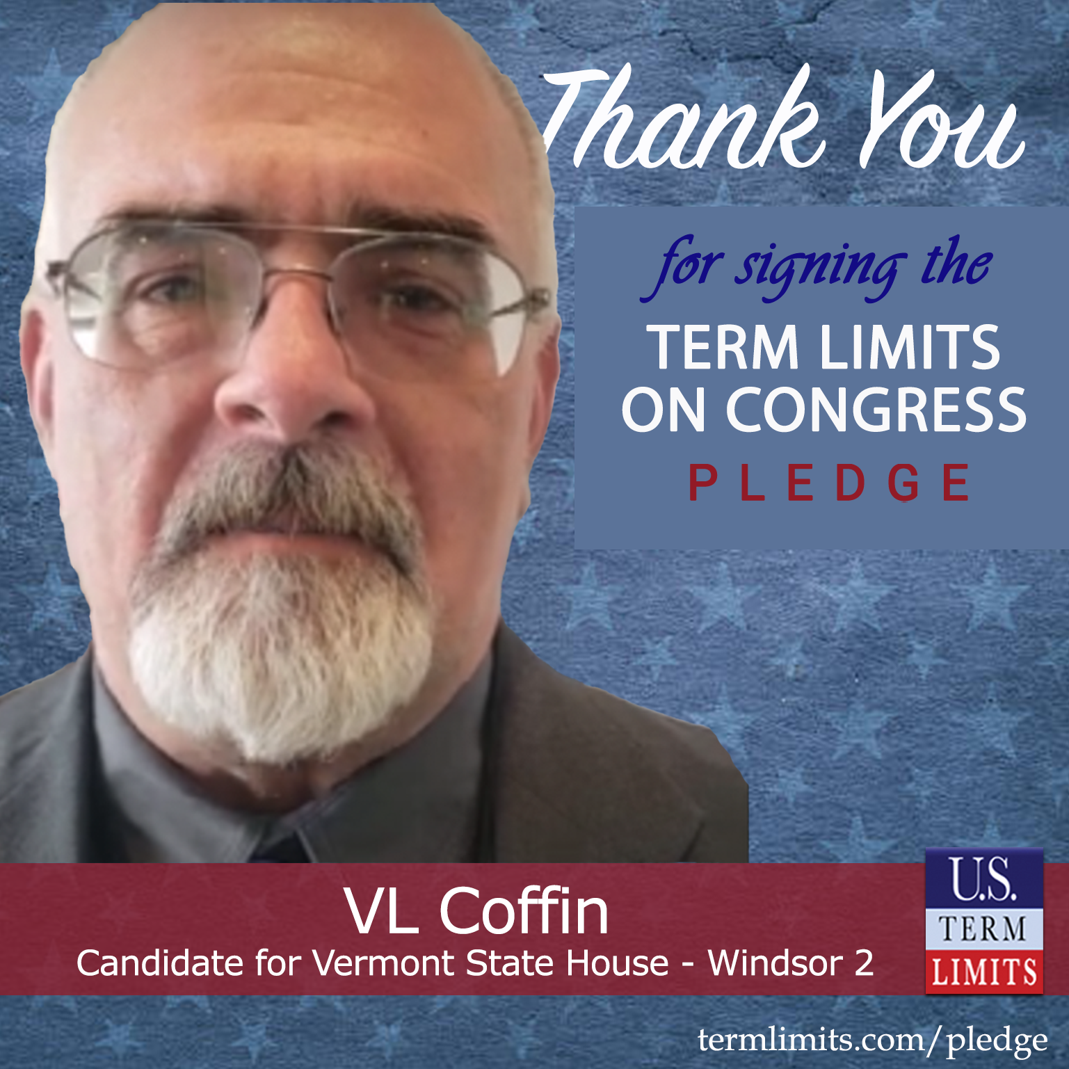 Montpelier, VT – U.S. Term Limits (USTL), the leader in the national, non-partisan movement to limit terms for elected officials, is gathering support from state lawmakers across the nation. Its mission is to get 34 states to apply for an amendment proposal convention specific to term limits on Congress. Vermont state house candidate, VL Coffin (Windsor 2 district), has committed support for term limits on Congress by signing the term limits convention pledge.
