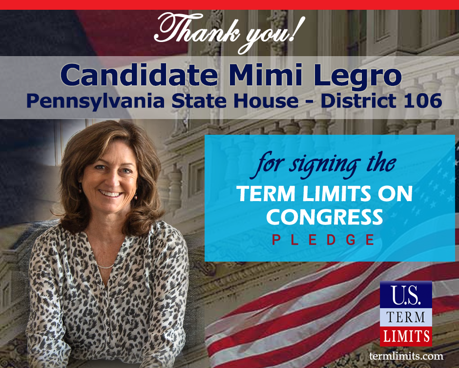 The U.S. Term Limits pledge is provided to candidates and members of state legislatures. It reads, “I pledge that, as a member of the state legislature, I will cosponsor, vote for, and defend the resolution applying for an Article V convention for the limited purpose of enacting term limits on Congress.”