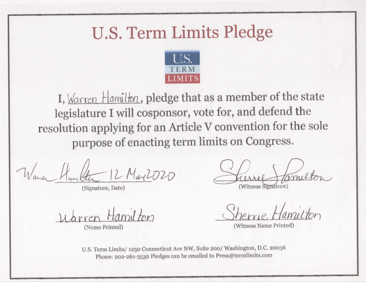 Warren Hamilton Pledges to Support Congressional Term Limits