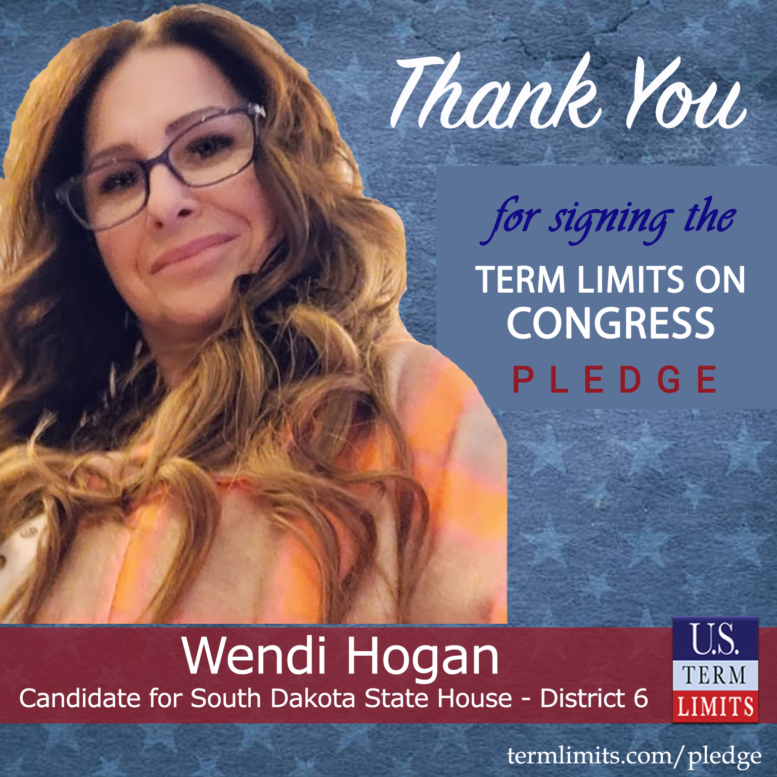 Harrisburg, SD – U.S. Term Limits (USTL), the leader in the national, non-partisan movement to limit terms for elected officials, is gathering support from state lawmakers across the nation. Its mission is to get 34 states to apply for an amendment proposal convention specific to term limits on Congress. South Dakota state house candidate, Wendi Hogan (District 6), has committed support for term limits on Congress by signing the term limits convention pledge. Hogan is the first signer in this race.
