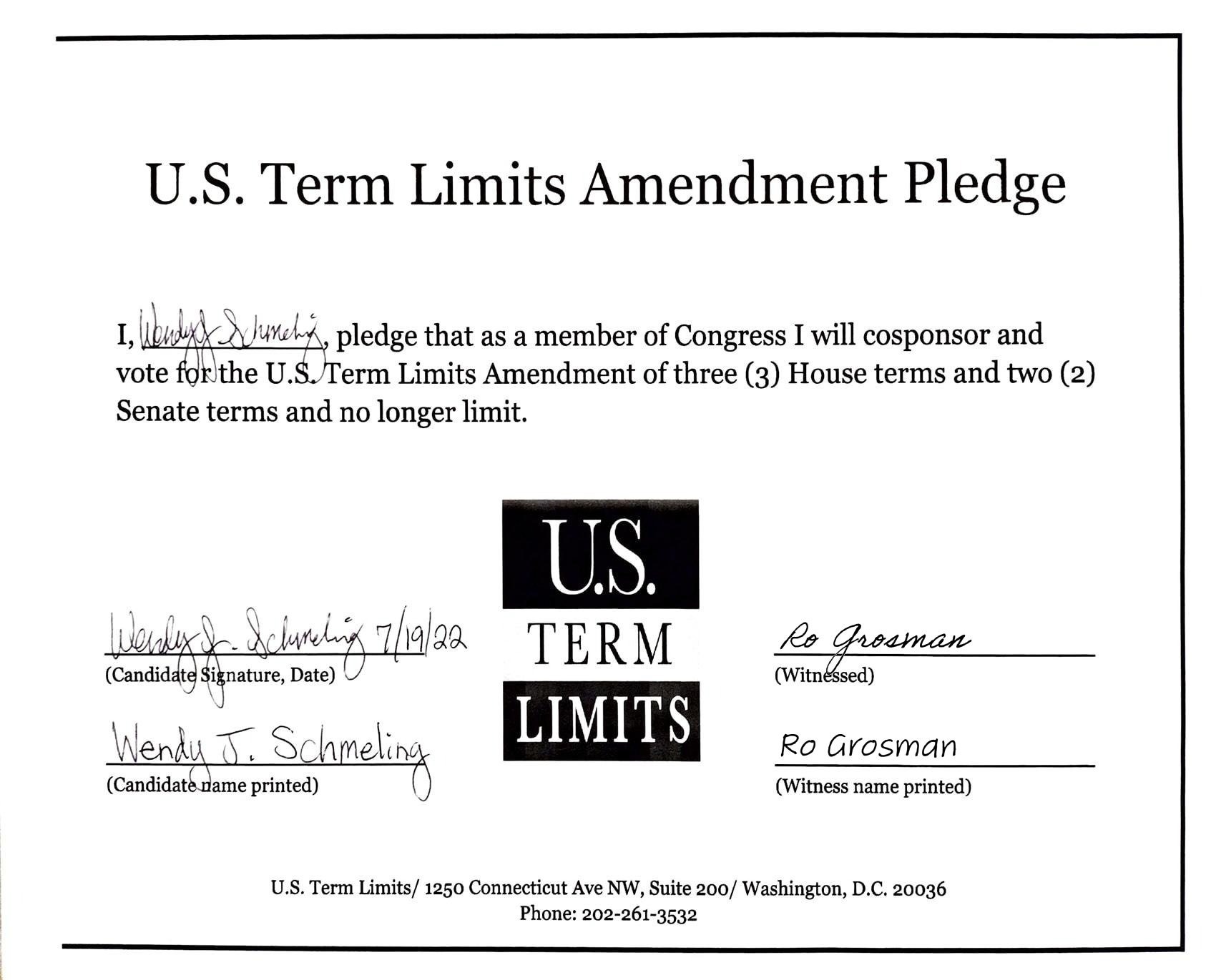 Wendy Schmeling Pledges to Support Term Limits on Congress