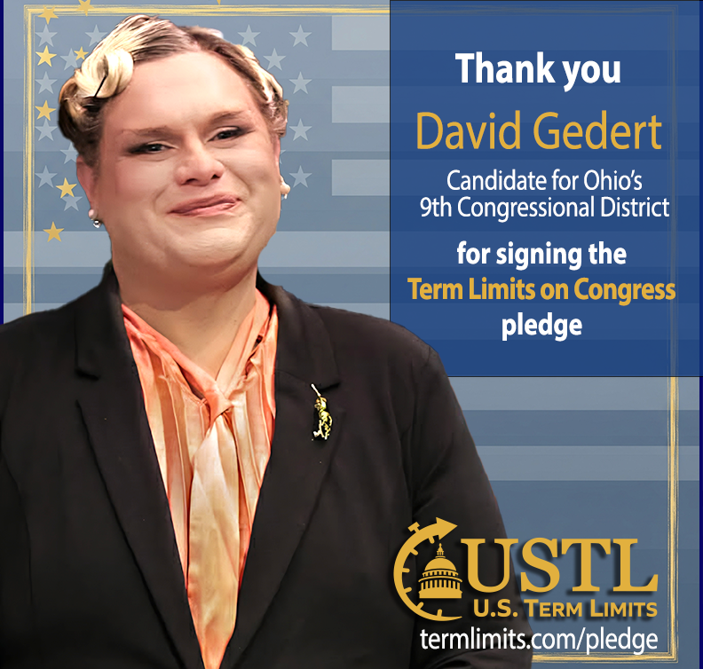 Washington D.C. – U.S. Term Limits (USTL), the leader in the non-partisan national movement to limit terms for elected officials, praises 2026 U.S. House of Representatives candidate for Ohio, David Gedert (district 9), for signing the pledge for an amendment to term limit Congress. Previously, candidates Josh Williams, Anthony Campbell, Alea Nadeem, and Derrick Merrin also signed the pledge.