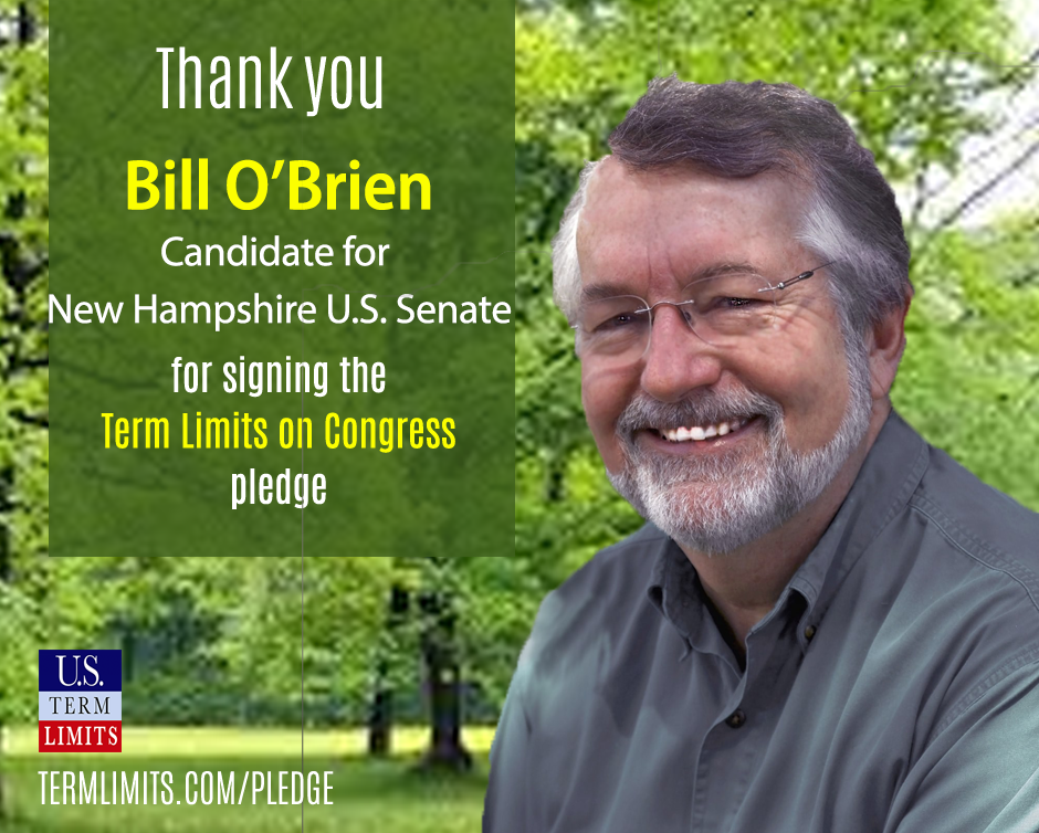 Washington, D.C. – U.S. Term Limits (USTL), the leader in the non-partisan national movement to limit terms for elected officials, praises Bill O’Brien, 2020 U.S. Senate candidate from New Hampshire, for signing the pledge for an amendment to term limit Congress. Previously, retired Brigadiere General Don Bolduc, another candidate in the race, also pledged to support term limits.