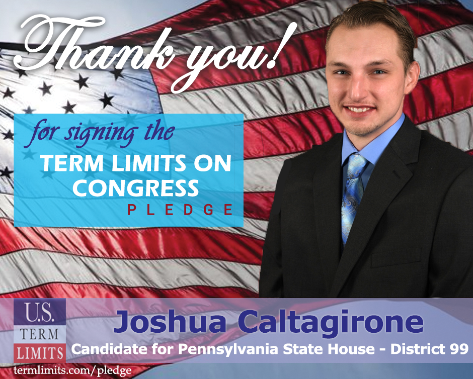 The U.S. Term Limits pledge is provided to candidates and members of state legislatures. It reads, “I pledge that, as a member of the state legislature, I will cosponsor, vote for, and defend the resolution applying for an Article V convention for the sole purpose of enacting term limits on Congress.”