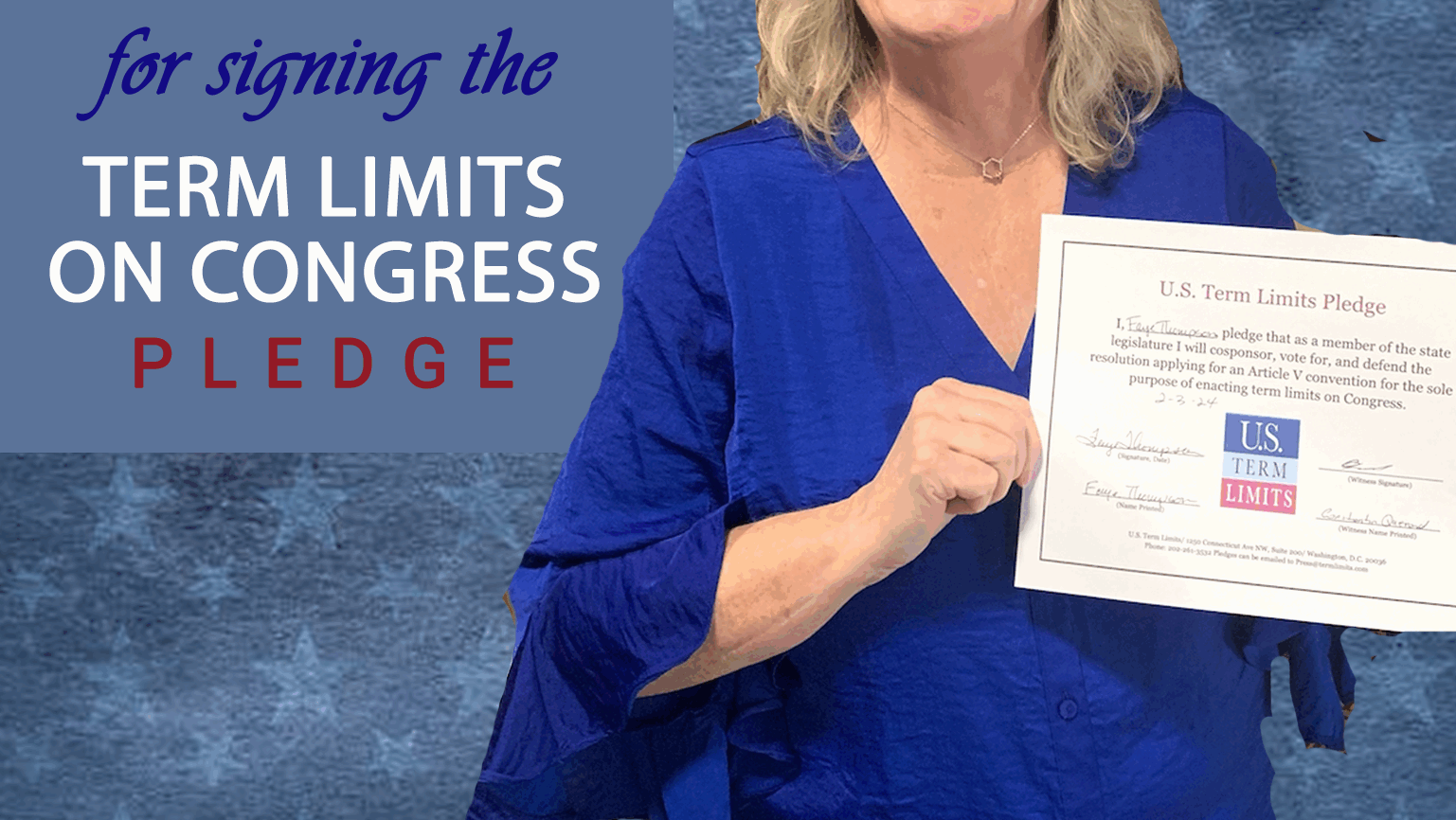 The U.S. Term Limits pledge is provided to candidates and members of state legislatures. It reads, “I pledge that, as a member of the state legislature, I will cosponsor, vote for, and defend the resolution applying for an Article V convention for the sole purpose of enacting term limits on Congress.”