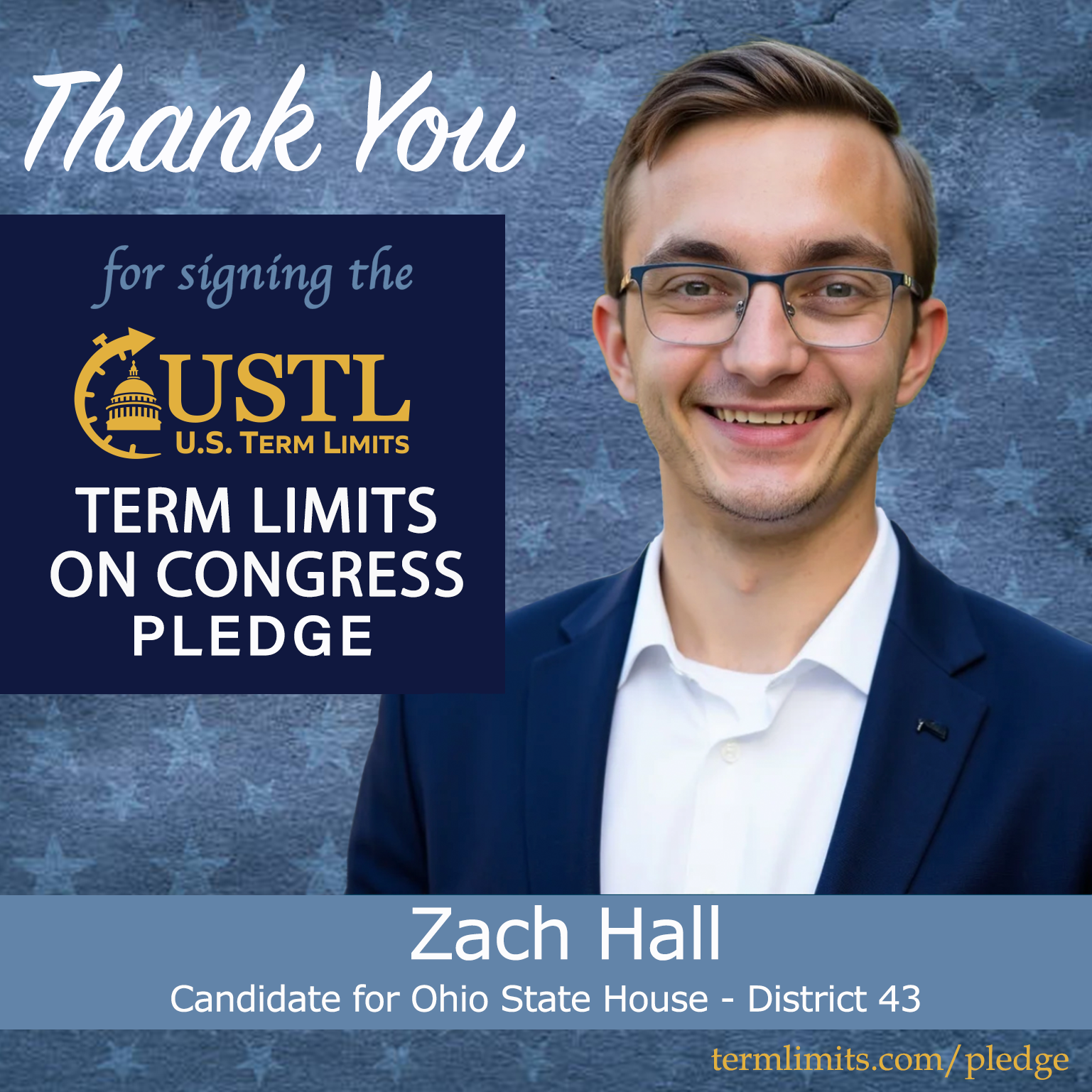Toledo, OH – U.S. Term Limits (USTL), the leader in the national, non-partisan movement to limit terms for elected officials, is gathering support from state lawmakers across the nation. Its mission is to get 34 states to apply for an amendment proposal convention specific to term limits on Congress. Ohio state house candidate,  Zach Hall (district 43), has committed support for term limits on Congress by signing the term limits convention pledge. Previously, candidate Wendi Hendricks also signed the pledge.