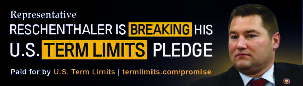 Reschenthaler pledged that he would support and cosponsor the U.S. Term Limits resolution limiting U.S. House members to three (3) two-year terms and U.S. Senators to two (2) six-year terms. However, House Joint Resolution 12 was introduced in January 2025 and Rep. Reschenthaler has refused to cosponsor the bill.